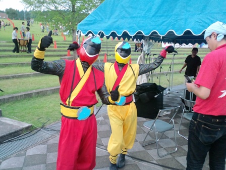 式典、メインフォーラムが全日空ゲートタワーホテルにて開催され、大懇親会がお隣のりんくう公園で開催されました。昨年もそうでしたが、前日、翌日も雨で奇跡的に当日のみ晴れということで、地区大会の強運は今年も続いております。 大懇親会にはゲストにET-KINGがこられ、会場を大いに盛り上げてくれました。ちょうどライブ前に、泉佐野の理事長にご挨拶にステージ裏にいっておりましたので、私のすぐ横にET-KINGの皆様がおられたのですが、残念ながら私が彼らをよく存じておりませんでして、ライブが始まってから、あぁ、今ここにいた彼らがET-KINGやったのか!というお粗末な状況です。 今回主管されました泉佐野JCの皆様、副主管の泉州地域各JCの皆様、本当にお疲れさまでした。 来年主管されます西宮JCの皆様、是非頑張ってください! 写真はET-KINGライブのステージ裏からの様子