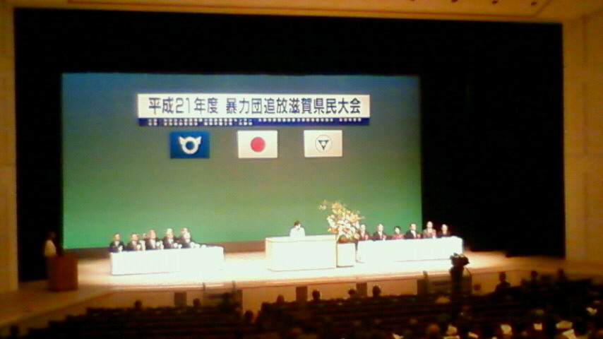 さて、本日は午後より大津市民会館大ホールにおきまして、財団法人滋賀県暴力団追放推進センター主催の「平成21年度暴力団追放滋賀県民大会」に出席してまいりました。本年度、暴力団追放甲賀湖南市民協議会の委員をしている関係でご案内をいただきました。主催者である同センターの会長を務めておられる嘉田知事のご挨拶からはじまり、センター理事長、滋賀県警察本部長のご挨拶、功労表彰、来賓祝辞、基調報告等がございました。指定暴力団では六代目山口組が構成員数20,300人で圧倒的な勢力を持ち、ついで住吉会が6,100人、稲川会が4,800人、暴力団員総数としては平成20年末現在で約82,000人、22団体が指定暴力団に指定されています。暴対法が強化されて以来、暴力団はその姿を不透明化し、その実態が非常にわかりにくくなっている傾向にあるようです。暴力団対策に関する様々なお話がありました。 また、夜には水口の伴谷公民館におきまして、水口町商工会第7支部の総代会が開催されました。議題のメインは10月31日、11月1日に開催される商工祭りに関する件で、開催概要についての詳細を確認しました。これまで支部への携わりはほとんどございませんでしたので、実質はじめて経験する商工祭りに何かと戸惑いはございますが、伴谷地域のために頑張りたいと思います。 昨日は、朝から甲賀市市民活動団体・ボランティア団体を支援する機関のネットワーク連絡会の会員7名で、守山市の市民活動団体・ボランティアの情報を有する組織間ネットワーク連絡会との意見交換会に参加してまいりました。