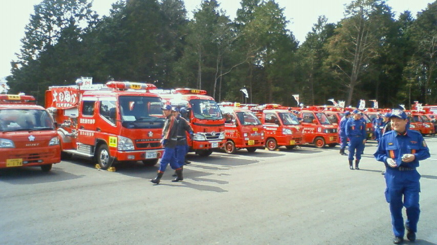 その後、恒例の防火パレードが行われました。春の全国火災予防運動は3月1日から7日までとなっております。防火啓蒙のため管内をポンプ車、積載車で隊列を組み、春の火災予防運動の啓蒙テープを流しながら約2時間ほど巡回を行いました。天気がよかったこともあり沿道に子どもの姿も多く見られ、チビッ子たちに手を振りながらの巡回となりました。 「火のしまつ君がしなくて誰がする」(20年度全国統一標語) 皆様も火の取り扱いには十分ご注意下さい。