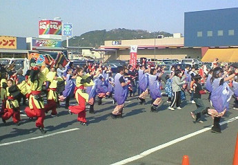 両日とも好天に恵まれ、少々暑いぐらいでした。 5日の会場は湖南市で開催された第18回にごり池さくらまつりの中で開催し、ござれGO-SHU!の東の横綱「乱舞天王・蒼(愛知県)」と、西の横綱「よさこい連わ(大阪府)」の2大チームと、地元の子供を中心としたチーム「こうかサスケくらぶ」の計3チームに会場を盛り上げていただきました。この地域はまだ寒さが残っていたせいか満開の桜にはあと数日かかる感じでしたが、踊りでは満開の花をそえさせていただきました。 6日は会場をアヤハプラザ水口に移し、昨日に引き続き「こうかサスケくらぶ」と、同じく地元の「KOUGA彩風舞人」、滋賀の龍谷大学のチーム「華舞龍」の3チームに演舞していただきました。 2日間多いに盛り上がりましたが、設営サイドとしてはやはり2日間の開催は結構疲れました。 あとになりましたがボランティアで司会をお手伝いいただきましたお二人さんも2日間お疲れさまでした。