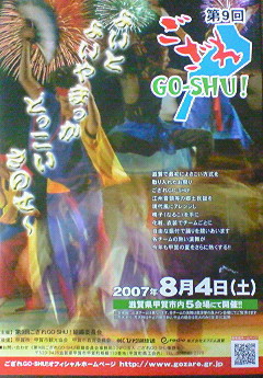 7月31日から甲賀市教育委員会が小学高学年を対象に募った7日間のキャンプの体験学習にて、信楽小の児童二人が亡くなるという非常に悲しい事故が起こりました。実はこの方のお一人は私の知り合いのお子様ということで一昨日のお通夜には個人的に参列させていただきました。 教育委員会主催の事業において、このような事故は決してあってはならないものと思いますし、またこれらの対応の行政の不手際につきましてはマスコミ等で報じられておりますように、私も子どもを持つ親として、そして同じ甲賀市民として怒りを感じているところでございます。 このような事態を踏まえまして、第9回ござれGO-SHU!といたしましても、甲賀市の後援をいただいております事業でもございますし、ご遺族の皆様方、そして信楽の小学生の皆様や関係各位の皆様方の心情を考慮させていただきました上で、予定しておりました平和堂信楽店パルム専門店街会場での第9回ござれGO-SHU!の開催を自粛させていただく事となりました。また、予定しておりました演舞チームの演舞につきましてはアヤハプラザ水口会場におきまして、午後から開催させていただく予定でございます。 甲賀市サイドの見解の確認と、予定しておりました平和堂信楽店の店長様への断りの確認、また代替会場のアヤハプラザの担当の方との交渉、警備計画の見直し、ボランティアスタッフをはじめとする会場人員の見直し、緊急ござれ組織委員会の招集と会議の実施、警備会社の折衝、警察への確認、PAのキャンセル、発電機の追加発注などなど、今まで数ヶ月かけて行ってきた段取りを数時間で全て調整をはからなければならない事態に、朝から深夜までこの対応にかかりっきりで、正直今日は非常に疲れました。 半年以上の歳月をかけて開催準備にあたってまいりました事業を、最終的に行政サイドに足を引っ張られるカタチになったことは、我々主催者としましては悲しい限りです。 今回の事故発生に対する危機管理の甘さ、そしてその後の対応についての市の対応の甘さ、私自身が怒りを感じる部分は非常に大きいわけで、ご遺族の皆様方の怒りはそれ以上のものであることは間違いありません。なくなられたお子様、そしてご遺族の皆様方にご冥福をお祈り申し上げますと共に、今回急遽会場変更等が生じましたことによります関係各位に対しましてご迷惑をおかけいたしますことを、この場をお借りいたしましてお詫び申し上げます。 第9回ござれGO-SHU!開催まであとわずかとなりました。今宵は全体スタッフ説明会ということで、ボランティアスタッフ、学生スタッフを含めた全スタッフにおける会議を開催し、多くの皆様にお集まりいただきました。年々スタッフの数も増加し、近年ではスタッフTシャツを着ておられるのでスタッフとわかりますが、正直顔も名前もわからないスタッフが増えてきているのも事実です。組織が大きくなり、数百名体制になればやむを得ないのかも知れません。しかし、それだけに、敢えて我々の想いというものを全スタッフに浸透させた上で運営に望みたいところです。