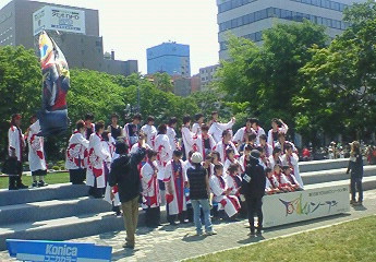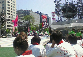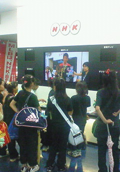生中継風にやってましたが、諸事情により今日の放送分は実は収録です。(普段は生中継だそうですが)とはいうものの、ほとんど生同然の状態で、打合せのあとリハーサルをやって、子どもたちの踊りのチェックしてそのままテスト本番(←要するに、良ければそのままOKってやつ)でカメラ回って、そのままOKになりました。 私的にはもう一回チャンスが欲しかったのですが、なんかイマイチな出来です。でも時間がなかったんでしょうきっと。18:10からの番組で、収録終えたのはほとんど18:00前でしたので・・・。5名ぐらいでお越し下さいっていうNHKさんからの依頼に15名で出演したのですから無理もありません。NHKのロビーの備品をいろいろ移動させて何とかスペースを確保し、無理やり全員出演させていただきました。子どもたちにとっては良い思いでになったのではないでしょうか?しかし大したもんです子どもたちも。ずいぶんとカメラ慣れ?してきたのでしょうか。昨年は毎日放送の「ちちんぷいぷい」に生出演で踊ってくれましたし、びわ湖放送でも生出演で踊ってくれてます。回を重ねるごとに堂々と踊れるようになってきている気がします。こうかサスケくらぶの皆さん大変お疲れ様でした。 写真は実際の放送をNHKのロビーで観ているところです。 明日4日NHK大津放送局で18:10から放送される「おうみ発610」のQPハートプラザのコーナーに、第9回ござれGO-SHU!のイベント告知で私ほか子どもたち数名で出演します。是非NHK大津ローカルがご覧いただける方は観てください。