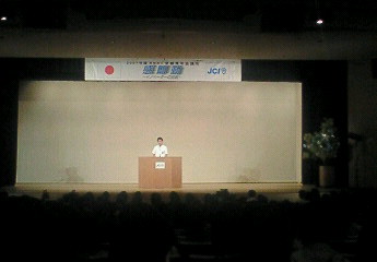 その後、ござれGO-SHU!の設営委員会が別室で開催されていましたので、そちらに顔をだし内容を確認させていただきました。主に当日の会場設営についての打合せを中心にしていただいておりました。会場間のバスの運行と、その発着場所及び駐車場の場所の確保の問題等が浮上しており、Y委員長をはじめ委員の皆様にはいろいろと頭を悩めていただいているところです。 年々拡大していく開催規模と、年々減少していく行政からの補助金との狭間で実は我々実行委員会スタッフの陰での様々な苦労が大会開催の裏側で支えとなっているのも事実です。 開催に向けての調整事項や課題、問題等まだまだ山積みですが実行委員会スタッフが一丸となって第9回ござれGO-SHU!の成功に向け現在取り組んでおります。ボランティアスタッフも現在募集中ですのでご協力いただける方おられましたら是非ご一報下さい!! 今日から梅雨入りとのコトで、うっとおしい天気です。さて、先日仕事の関係で東京のある方からメールをいただき、是非ともこの講演に行って下さいとの案内をいただきました。何かと思いきや、(社)京都青年会議所の6月度オープン例会ではないですか。講師は五日市剛氏で、テーマは「ツキを呼ぶ魔法の言葉」。ということで、今宵、京都産業会館まで参加してまいりました。講師の五日市氏は撮影禁止でしたので、写真は京都青年会議所の人見理事長ですが、五日市氏はとにかく話が面白い! 工学博士号の肩書きもあり、正直もっと堅苦しい話をされる方かと思ってましたが、冒頭から会場に笑いを振りまき、終始和やかな雰囲気で講演をしていただきました。しかもその中に、しっかりと涙と感動のトークもあり久々に素晴らしい講演を聴かせていただきました。システム手帳に書き留めたメモは6ページにわたり、帰りには先生の本を4冊ほど購入させていただきました。で、ツキを呼ぶ魔法の言葉ですが、気になる方は五日市氏の講演を聴かれるか、書籍を読んでみて下さい。あなたの人生がハッピーになるかも?