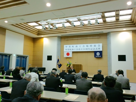 さて、今日は一昨日に引き続き、今度は水口町の商工会臨時総会、創立50周年記念式典が甲賀市水口町の碧水ホールで開催され出席してまいりました。 水口町商工会には株式会社あきない応援団で加入しており、甲賀町商工会にはNPO法人ござれGO-SHUで加入しております。複数の商工会に加入しているケースは珍しいようです。臨時総会の内容は甲賀町で開催されたものと全く同じで、正直退屈でした。創立50周年記念の記念講演では、西川きよし氏の講演が開催されましたが、私は時間の関係で先に帰らせていただきました。 昨日は甲賀町商工会の臨時総会ならびに設立50周年記念式典が、かふか生涯学習館にて開催されました。臨時総会は、旧5町の商工会が合併し来年4月に甲賀市商工会として新たに発足するために開催されたもので、無事すべての議案が可決承認されました。また、50周年記念式典では多くの会員の皆様が功労表彰を受賞されました。
