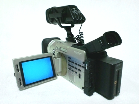 これは、民生機のHDR-CX550Vをベースとしたもので、外観的に大きく異なるのがレンズフードとガンマイクが付いている点です。業務用モデルでありながらこのガンマイクはステレオミニプラグ入力なのが残念で、マニュアルのズームがないのも不便です。が、大きさや価格などトータルで考えるとプライベートで使用するにはかなり便利です。 最近ではスタジオ収録の裏側や、先日のござれGO-SHU!の舞台裏映像を撮りながら、徐々にMC50Jの実力を検証中です。 ■SONY HXR-MC50J 艶消しブラックのボディは民生機のCX550Vとは異なる点。 ■SONY HVR-A1J 写真はロケ用のA1Jです。HDのDVCAM最小モデルのこのカメラはマイク入力がキャノンプラグで2系統あり、レンズリングにズームが割り当て可能な点は便利。しかし三脚にセットしたままテープ交換ができない点や、この時期のCMOSは、3CCDより劣る気がしてどうも好きになれません。ちなみに、A1Jにワイコンを装着した画角よりMC50Jのほうが広角です。SONY自慢のGレンズのおかげです。 ■SONY TRV900 今から12年前に購入したこのカメラは2度のオーバーホールを経て今も活躍中!往年の名機TRV900はSDならまだまだ現役で頑張れます。 外部マイクは世界中でヒットのRODEのステレオビデオマイク。しかしながら、MC50Jの購入に伴いそろそろ現役引退です。