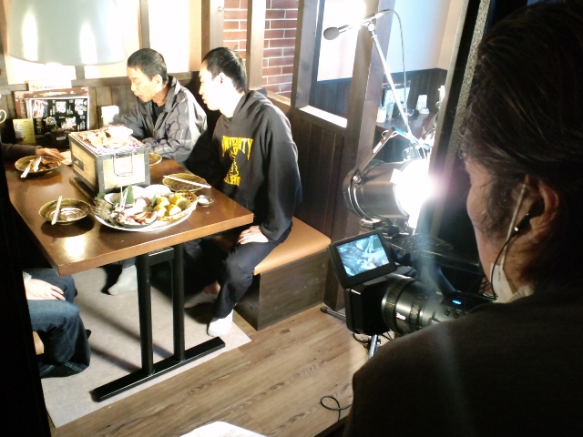 午後からテレビCMの撮影を2本行いました。まず1本目は野洲市内のO社。霊柩車を扱う会社で、スチール撮影を3台分行い、その後打ち合わせを行いました。その後、草津市内の飲食店に移動し、2本目、VTRの撮影を行いました。お店の従業員の方に家族役で出演いただき、それぞれにセリフを話していただく設定で撮影を行いました。やはり素人さんですので何度も取り直しが必要でしたが、なんとか無事取り終えることができました。